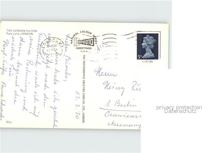 old postcard London The London Hilton Park Lane postalisch gelaufen Erhaltung siehe scans