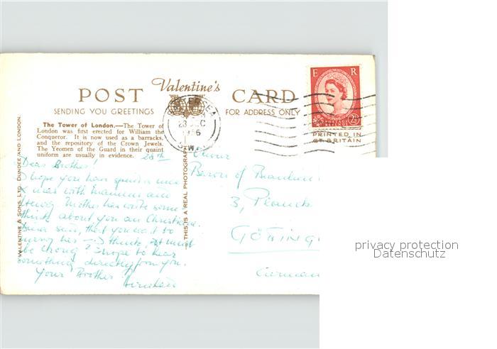 old postcard London The Tower postalisch gelaufen Erhaltung siehe scans