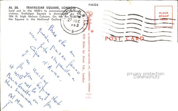 old postcard London Trafalgar Square postalisch gelaufen Erhaltung siehe scans