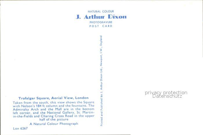 London Trafalgar Square Aerial View postalisch nicht gelaufen Erhaltung siehe scans