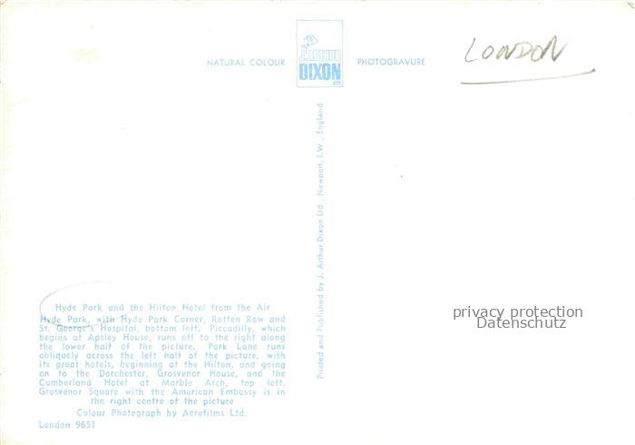 74100766 LONDON UK Hyde Park and the Hilton Hotel postalisch nicht gelaufen Fliegeraufnahme Erhaltung siehe scans [FriedD77] KatCode: 11570UKI1I11AA