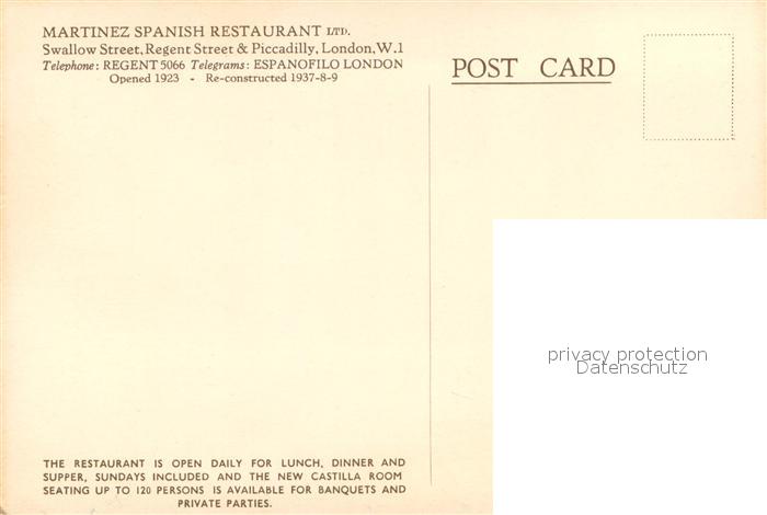 73746893 London UK Martinez Spanish Restaurant Sherry Lounge postalisch nicht gelaufen Erhaltung siehe scans [LiesaD40] Lies Katcode 11570UKI1I11AA