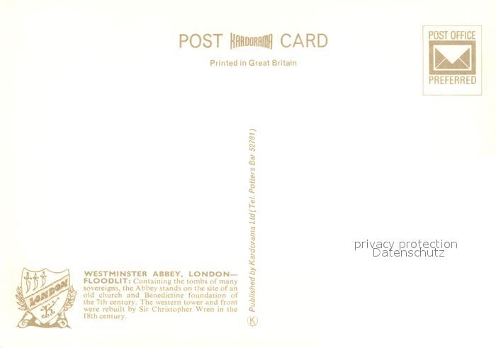 73277805 London Westminster Abbey postalisch nicht gelaufen Erhaltung siehe scans [PaolaD17] KatCode: 11570UKI1I11AA