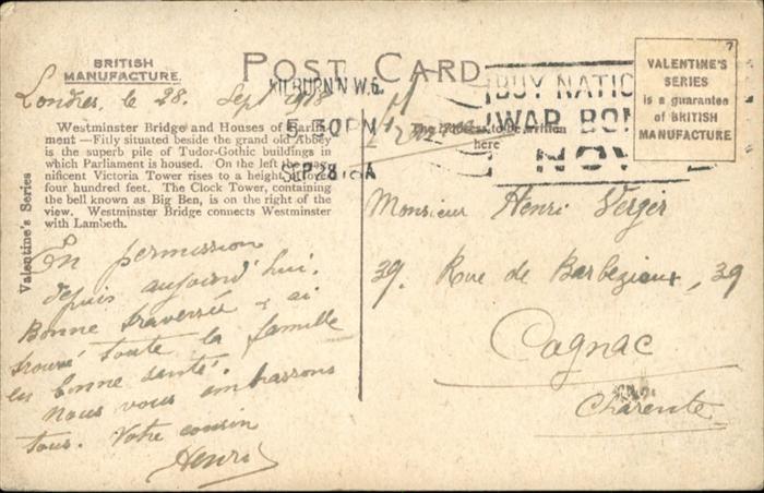 old postcard London Westminster Bridge Strassenbahn Kutsche postalisch gelaufen