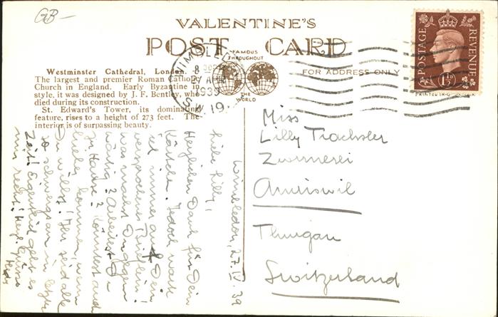 11474857 old postcard London Westminster Cathedral postalisch gelaufen Erhaltung siehe scans KatCode: 11570UKI1I11AA