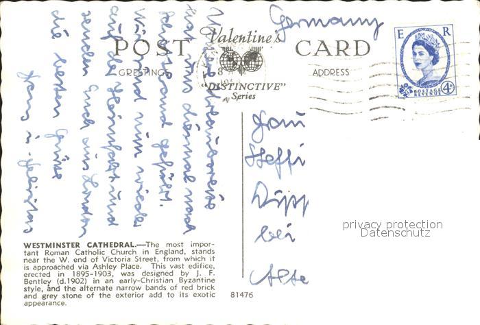 old postcard London Westminster Cathedral postalisch gelaufen Erhaltung siehe scans
