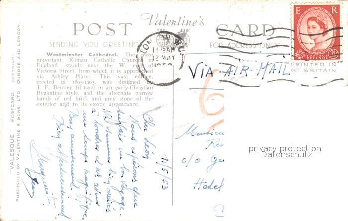 old postcard London Westminster Cathedral postalisch gelaufen Erhaltung siehe scans