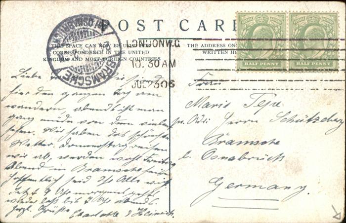 11004119 old postcard London Zoological Gardens postalisch gelaufen KatCode: 11570UKI1I11AA