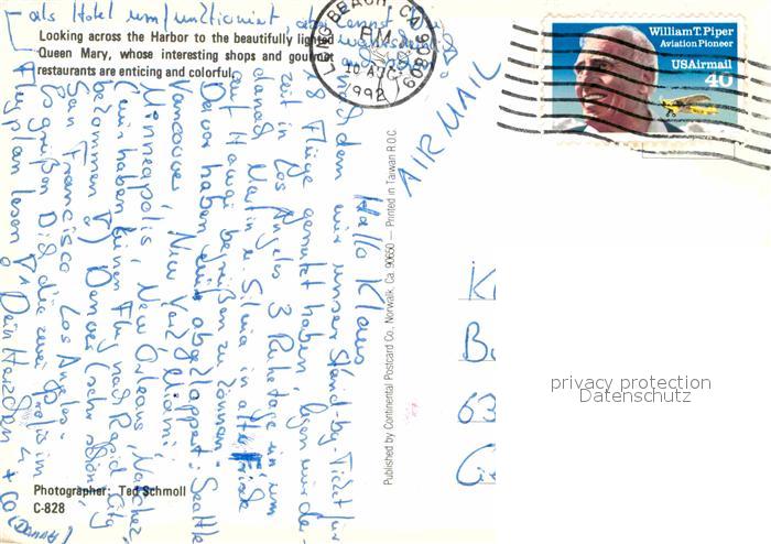 72905371 old postcard Long Beach California Harbor Queen Mary Dampfer postalisch gelaufen Erhaltung siehe scans [NatalD47] KatCode: 14140050000000