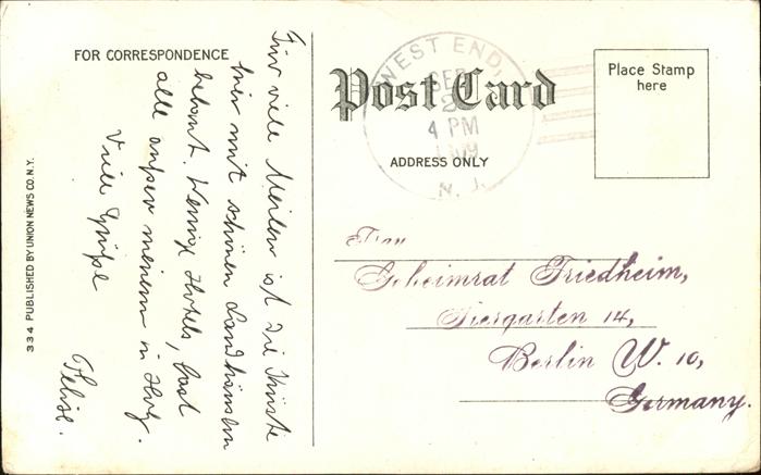 11109602 old postcard Long Branch New Jersey Firenze Residence Dan. Guggenheim postalisch gelaufen KatCode: 14140320000000