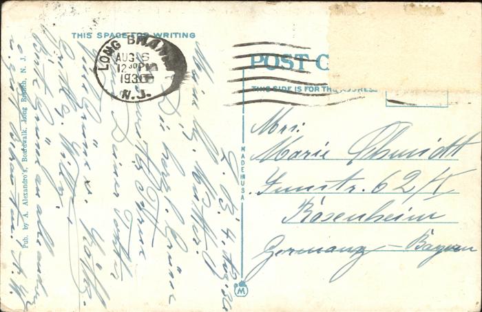 11094389 old postcard Long Branch New Jersey takanassee Hotel Brighton Avenue West End postalisch gelaufen KatCode: 14140320000000