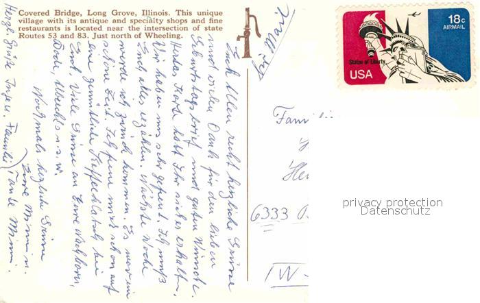 72840989 old postcard Long Grove Illinois Covered Bridge postalisch gelaufen Erhaltung siehe scans [NatalD47] KatCode: 14140150000000