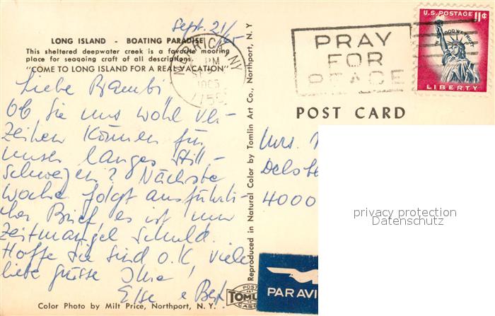 73293330 old postcard Long Island City Boating Paradise postalisch gelaufen Erhaltung siehe scans [WerneD78] KatCode: 14140340000000