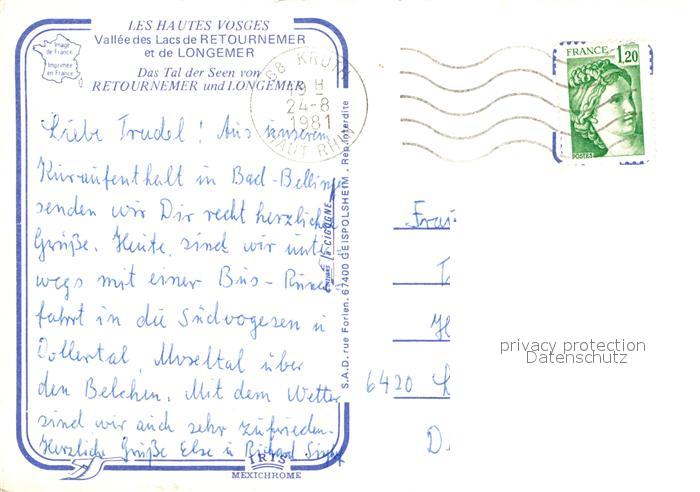 13041488 carte postale Longemer Xonrupt postalisch gelaufen Erhaltung siehe scans [NatalD47] KatCode: 11170088388531