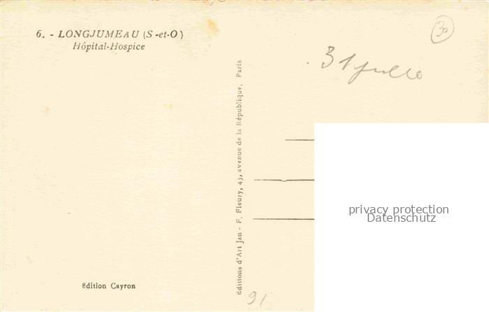 14115446 Longjumeau Palaiseau 91 Essonne Hôpital-Hospice postalisch nicht gelaufen Erhaltung siehe scans [FriedD77] Frie Katcode 11170091391345