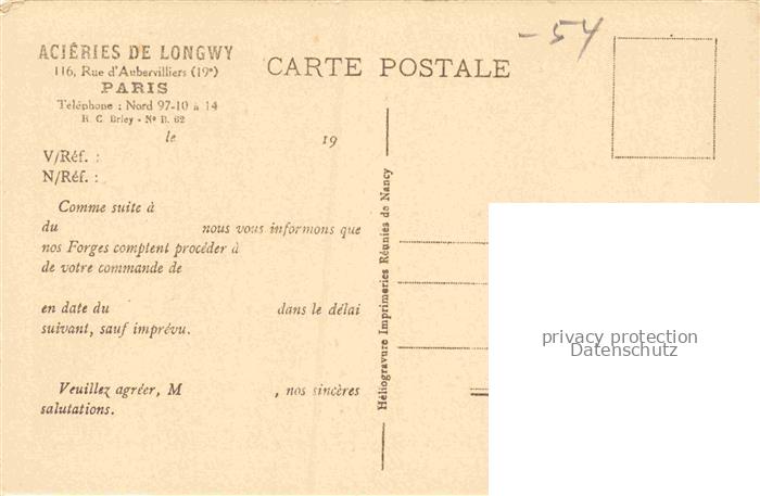 34144865 Longwy 54 Meurthe-et-Moselle Acierie Martin Halle de Coulee postalisch nicht gelaufen Erhaltung siehe scans [WerneD78] KatCode: 11170054154323