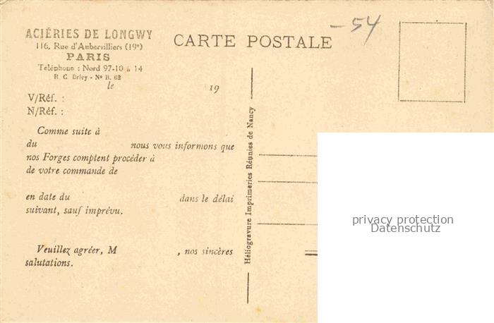 34144867 Longwy 54 Meurthe-et-Moselle Acieries de Longwy Acierie Halle de Coulee postalisch nicht gelaufen Erhaltung siehe scans [WerneD78] KatCode: 11170054154323