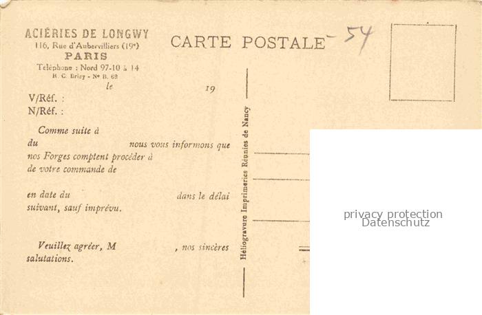 34144869 Longwy 54 Meurthe-et-Moselle Acieries de Longwy Acierie Halle de Coulee postalisch nicht gelaufen Erhaltung siehe scans [WerneD78] KatCode: 11170054154323