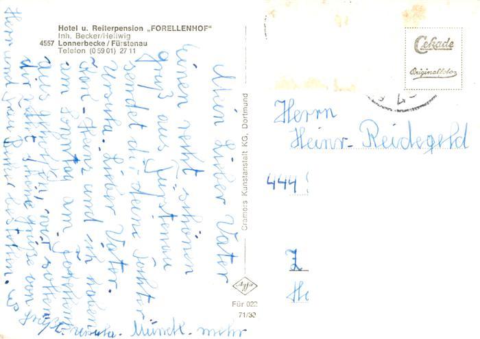 73876972 Lonnerbecke Bramsche Hase Hotel und Reiterpension Forellenhof Gaststube Zimmer Ponys postalisch nicht gelaufen Erhaltung siehe scans [FriedD77] KatCode: 11110003459011