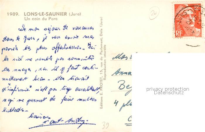 13504154 carte postale Lons-le-Saunier Jura Un coin du Parc postalisch gelaufen Erhaltung siehe scans [FriedD77] KatCode: 11170039239300