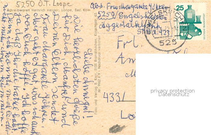 73706238 alte Postkarte Loope Schloss Ehreshoven Aggerpartie Langenfeld Aggertalklinik postalisch gelaufen Erhaltung siehe scans [LiesaD40] KatCode: 11110005374008