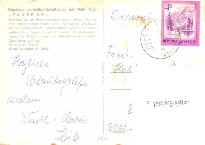 72829125 alte Postkarte Loosdorf Renaissance Schloss Schallaburg Taverne postalisch gelaufen Erhaltung siehe scans [FriedD77] KatCode: 11390121031520