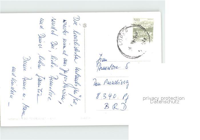 old postcard Lopar Auto Kamp Rajska Plaza Strandpartie Sandburg postalisch gelaufen Erhaltung siehe scans