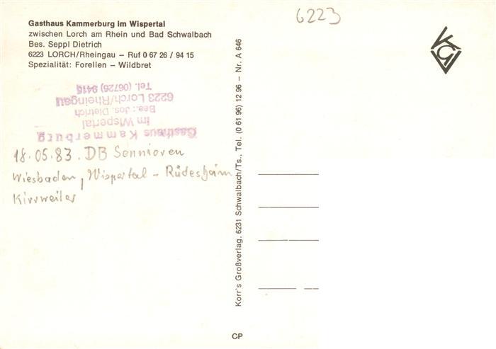 73935765 Lorch Rheingau Gasthaus Kammerburg im Wispertal postalisch nicht gelaufen Erhaltung siehe scans [FriedD77] KatCode: 11110006439010