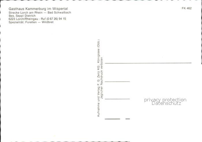 72572537 Lorch Rheingau Gasthaus Kammerburg im Wispertal postalisch nicht gelaufen Erhaltung siehe scans [LiesaD40] KatCode: 11110006439010