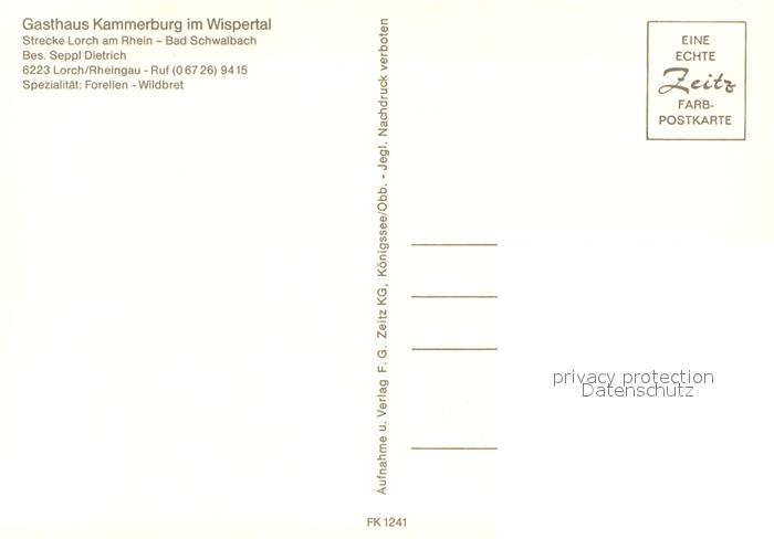73615785 Lorch Rheingau Gasthaus Kammerburg im Wispertal Park Gastraeume postalisch nicht gelaufen Erhaltung siehe scans [WerneD78] KatCode: 11110006439010