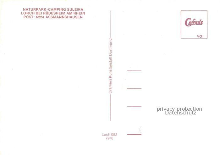 74040555 Lorch Rheingau Hessen Naturpark Camping Suleika Gaststaette Kiosk Landschaftspanorama postalisch nicht gelaufen Erhaltung siehe scans [FriedD77] KatCode: 11110006439010