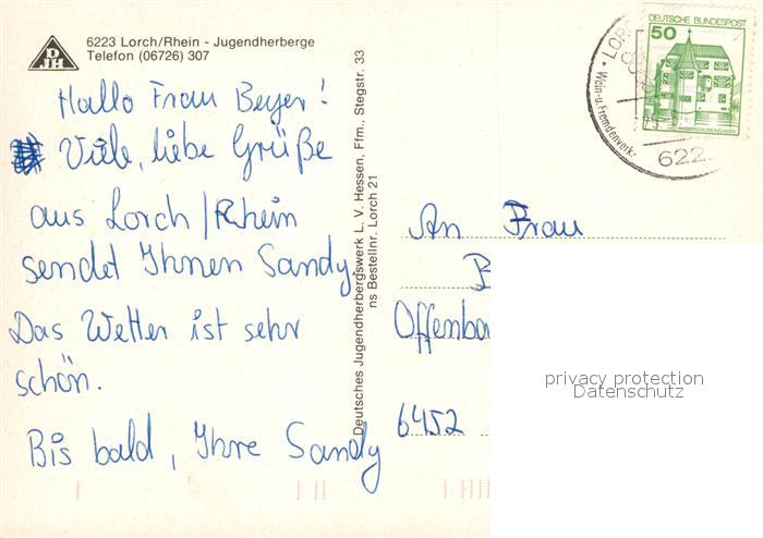 73055870 alte Postkarte Lorch Rheingau Jugendherberge Panorama Ruine postalisch gelaufen Erhaltung siehe scans [WerneD78] KatCode: 11110006439010
