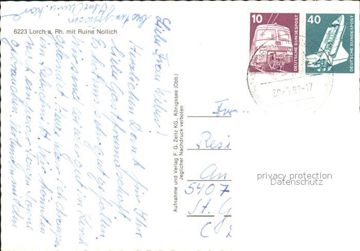72552635 alte Postkarte Lorch Rheingau mit Ruine Nollich postalisch gelaufen Erhaltung siehe scans [WerneD78] KatCode: 11110006439010