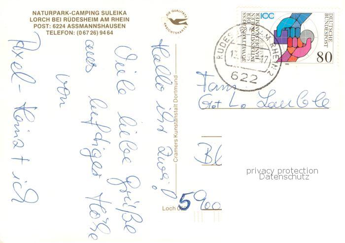 73784984 alte Postkarte Lorch Rheingau Naturpark Camping Suleika Kiosk Blick auf den Rhein postalisch gelaufen Erhaltung siehe scans [FriedD77] KatCode: 11110006439010