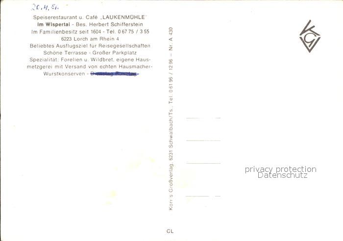 72579430 Lorch Rheingau Restaurant Cafe Laukenmuehle im Wispertal postalisch nicht gelaufen Erhaltung siehe scans [FriedD77] KatCode: 11110006439010