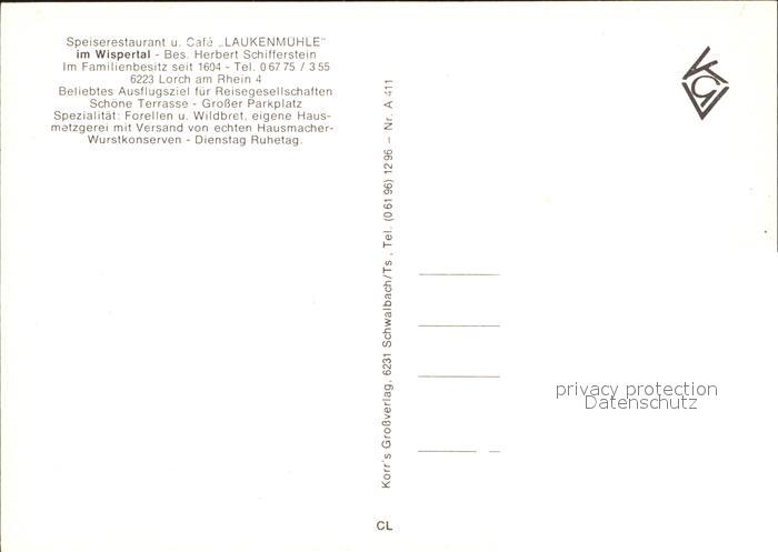 72111090 Lorch Rheingau Restaurant Cafe Laukenmuehle im Wispertal postalisch nicht gelaufen Erhaltung siehe scans KatCode: 11110006439010