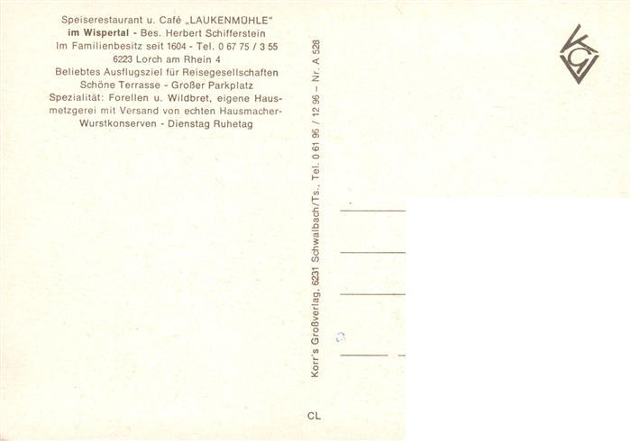 73935947 Lorch Rheingau Restaurant Cafe Laukenmuehle im Wispertal Gastraeume Terrasse Bar postalisch nicht gelaufen Erhaltung siehe scans [FriedD77] KatCode: 11110006439010