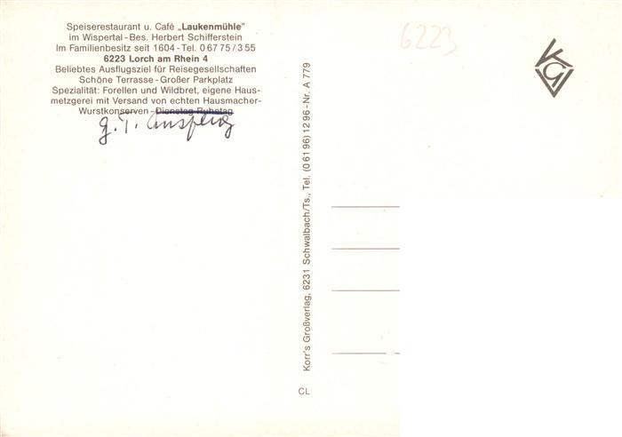 73935779 Lorch Rheingau Restaurant Cafe Laukenmuehle im Wispertal Muehlrad postalisch nicht gelaufen Erhaltung siehe scans [FriedD77] KatCode: 11110006439010