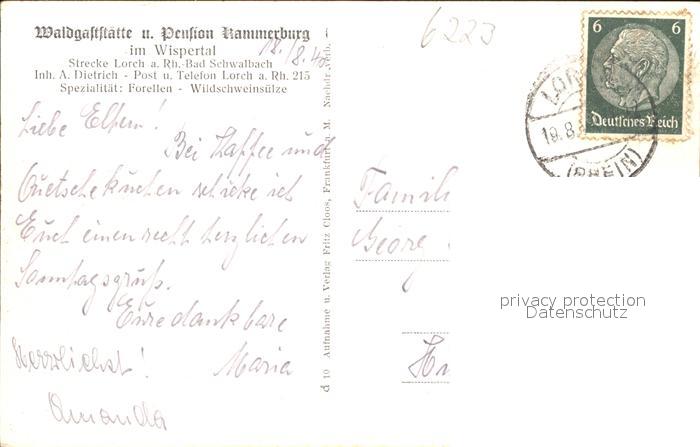 31717005 alte Postkarte Lorch Rheingau Ruine Kammerburg Restaurant postalisch gelaufen Erhaltung siehe scans KatCode: 11110006439010