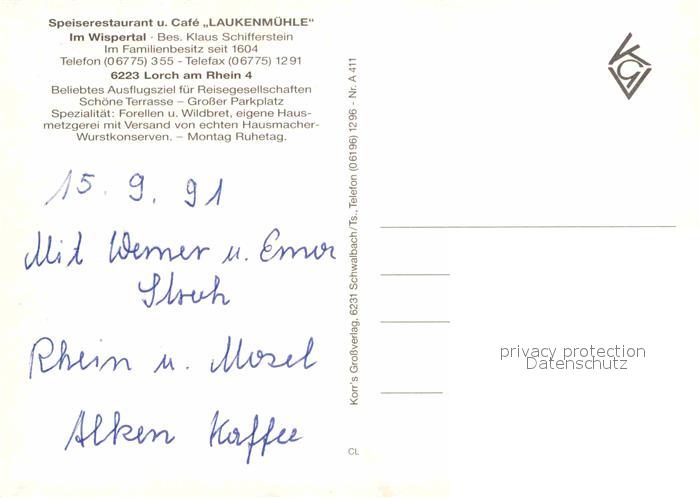 72852004 Lorch Rheingau Speiserestaurant Cafe Laukenmuehle im Wispertal postalisch nicht gelaufen Erhaltung siehe scans [FriedD77] KatCode: 11110006439010