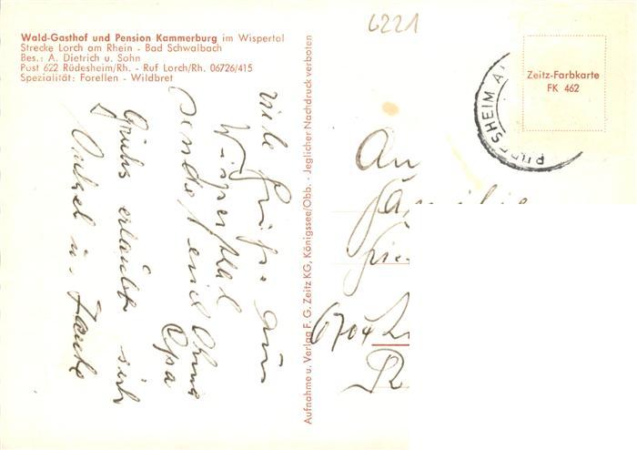 73935961 alte Postkarte Lorch Rheingau Waldhotel Cafe Restaurant Kammerburg im Wispertal postalisch gelaufen Erhaltung siehe scans [FriedD77] KatCode: 11110006439010