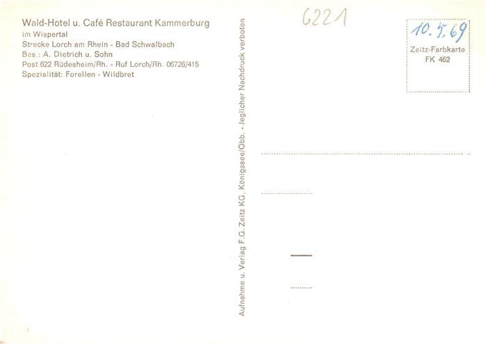 73935933 Lorch Rheingau Waldhotel Cafe Restaurant Kammerburg im Wispertal postalisch nicht gelaufen Erhaltung siehe scans [FriedD77] KatCode: 11110006439010