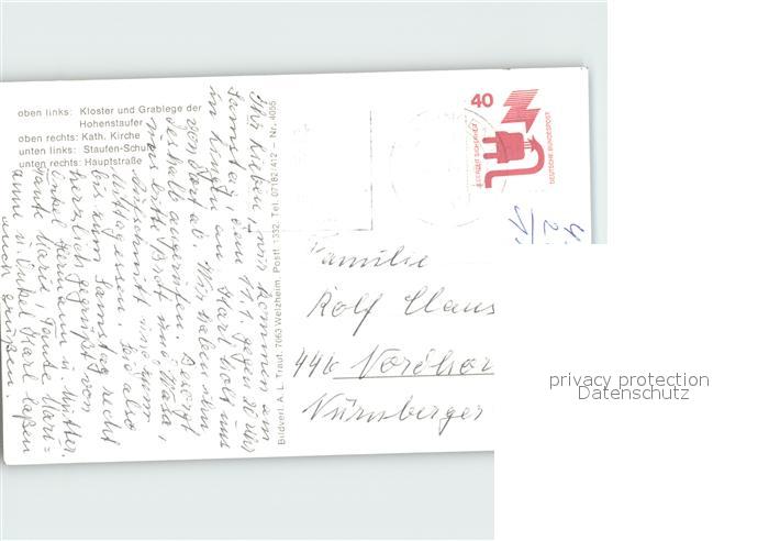 72299891 alte Postkarte Lorch Wuerttemberg Stauferstadt Kloster und Grablege der Hohenstaufer postalisch gelaufen Erhaltung siehe scans KatCode: 11110008136042