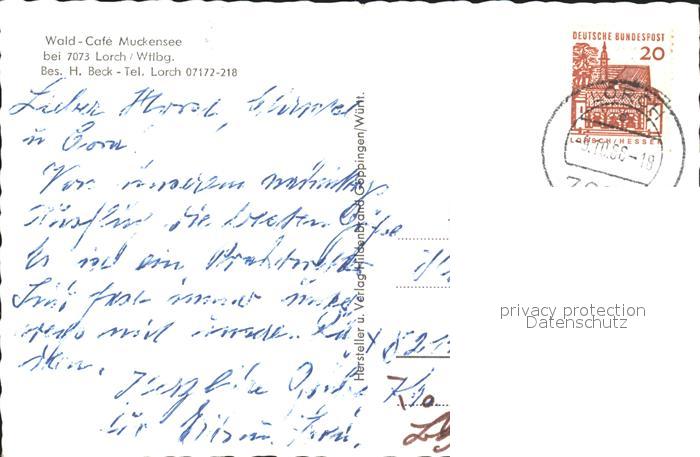 72365073 alte Postkarte Lorch Wuerttemberg Waldcafe Muckensee postalisch gelaufen Erhaltung siehe scans KatCode: 11110008136042