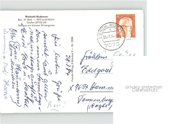 71979052 alte Postkarte Lorch Wuerttemberg WaldCafe Muckensee postalisch gelaufen Erhaltung siehe scans KatCode: 11110008136042