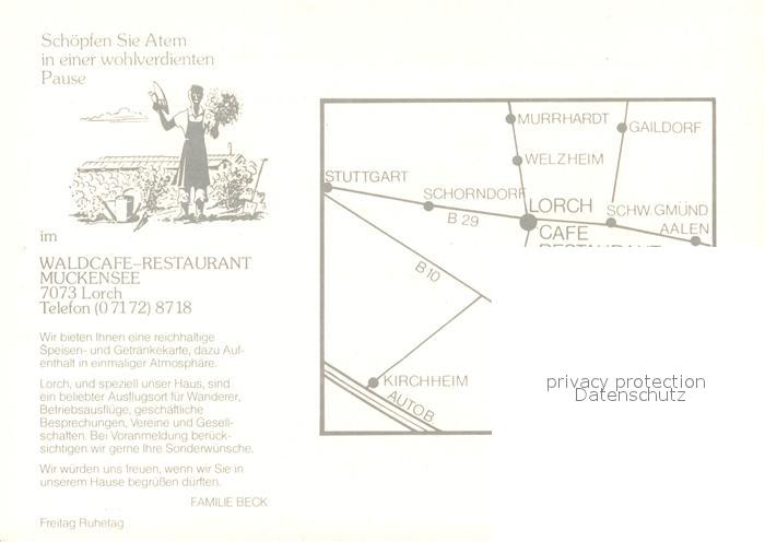 73175073 Lorch Wuerttemberg Waldcafe Restaurant Muckensee Terrasse Wintergarten postalisch nicht gelaufen Werbekarte (keine Postkarte) Erhaltung siehe scans [FriedD77] KatCode: 11110008136042