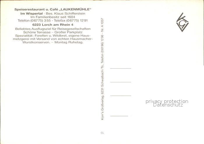 Lorchhausen Rheingau Restaurant Laukenmuehle postalisch nicht gelaufen Erhaltung siehe scans