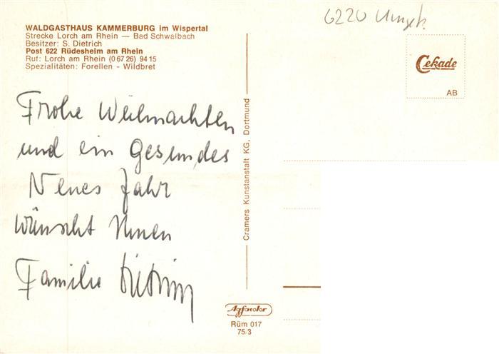 73936551 Lorchhausen Rheingau Waldgasthaus Restaurant Kammerburg im Wispertal Gastraeume Teilansichten postalisch nicht gelaufen Erhaltung siehe scans [FriedD77] KatCode: 11110006439010