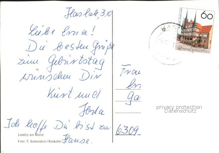 72421874 alte Postkarte Lorelei Loreley Felsen Rhein Schiff postalisch gelaufen Erhaltung siehe scans KatCode: 11110007141121
