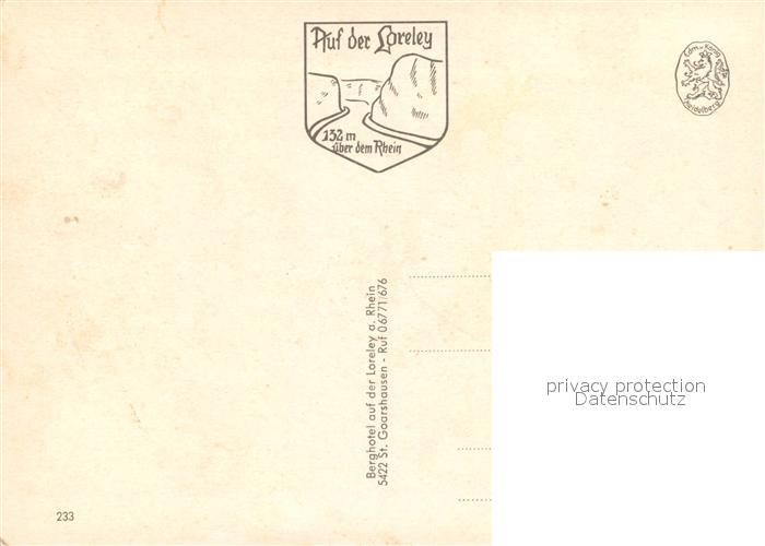 73001181 Loreley Lorelei Gedicht postalisch nicht gelaufen Erhaltung siehe scans [PaolaD17] KatCode: 11110007141121